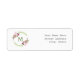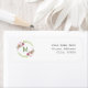 En adressetikett med en illustration av blommor och grönt som ordnats i en cirkel. Anpassa med din första plats i blommornas centrum. Anpassa till adress vid högerna.