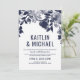 Blommigt allt i ett bröllop (marinblått) inbjudningar