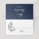 De här ankarplatskorten i blommigt bröllop är perfekt för ett nautiskt tema bröllop. Utformningen har en vacker bukett av rosa och vita sommarblommor som är inslagna runt en vattenfärgsbåtankare. Anpassa baksidan av platskorten med namn på bruden och brudgummen och datum. Köp i bulk och skriva gäst namn och bordsnummer på de tryckta korten när de kommer.