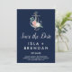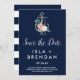 Den här blommigtens ankarsjösommar sparar du datumkortet som perfekt för ett nautiskt tema bröllop. Utformningen har en vacker bukett av rosa och vita sommarblommor som är inslagna runt en vattenfärgsbåtankare.
