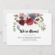 Modern flytta för blommigt aviserar att vänner, medarbetare, grannar och familj ska få veta hur du rör dig. Kortet har en modern utformning av blommigten, med fält för att anpassa det här "Vi har flyttat"-meddelandekortet med ditt/dina namn och nya adress detaljer. Lägg även till ett meddelande om personlig till vänner och familj på baksidan genom att klicka på knappen "Anpassa".