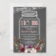 Trendig I D BBQ-utformning för det förlovade paret/inbjudningskort för möhippa. Den har en kriterbakgrund med ljus, en vit mynning burk, vattenfärgsburgundy, blommigt antler. På baksidan: blommigt bouquet på samma bakgrund. Använda Anpassa verktyg så att texten ändras till kostym i party. Se även min I DO BBQ Chalkboard/Barn and Gingham Collection.
