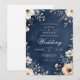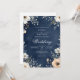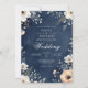 En mörk marin bakgrund visar en delikat blommigt med vita och muterade persikofärgade blommar och grön. Denna formgivning framkallar en stämning av sofistikerad romantik och naturskönhet.