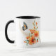 Det här är en söt mugg för vem som helst, med bilden av en söt blå och orange fjäril som flyger runt en orange vallmo blomsterträdgård. Bakom fjärilbilden finns en spår av guld faux glitter och snurrar. Bilden upprepas två gånger på mugg, med ditt namn i svart mellan dem.