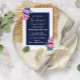 Personligens bröllopsinbjudningar med söt rosa och blåa vattenfärgblommor med vitt teckensnitt. Tema elegant blommigt bröllop.