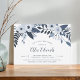 Chicens inbjudan till babydusch innehåller en gräns av blommor och botaniker i blå nyanser som inspirerats av nederländskt skifferpotteri. Anpassa med dina babyduschdetaljer i marinblått brev, med mor som ska vara namn i elegant handskript för kalligrafi av stil.