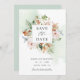 Meddela bröllop-datumet med det här elegant bröllop spara datumkortet med delikata vattenfärgsfläckar av grönt som överlappar varandra bakom vackra Spara datum blommigt ram i en blandning av modern kalligrafi och blocktypografi. Blommigt i en vacker blandning av beige, dammig, ro, , terrakotta, rost, bränd orange, grönt och ett blått nyans. Finns även i vykortspresentation. Tillbaka i den attraktiva tonen för grönt, som kan ändras till vitt eller vilket annat färg som helst genom att välja "anpassa ytterligare". Finns även med bäcksbeige baksida. En del av vår "Earthy Blooms in Sage Grönt and Terracotta"-samling med en mängd samordnande produkter, inklusive en komplett inbjudningssvit.