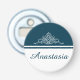 Utformning av blommigt med namn dekoration och rand på blå och vit bakgrund