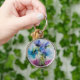 Blommigt av Grönt av färgad blå Lila Rosa Art Rund Silverfärgad Nyckelring
