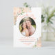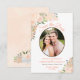 Det här vackra bröllop spara datum-kortet har en rustik blommigt för boho-chic med ditt foto i ett ovalt format ram omgivet av handmålat vattenfärgsfärgat ro och blommar i skalad av korall, persikor och blek orange. I typografin finns elegantens skriptbokstäver för grönt av sage. Klassi, snyggt och chic, det här kortet är ett underbart sätt att låta dina vänner och familj veta att spara datumet för din speciella dag.