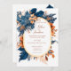 Den här Eleganten för Blommigt av marin blå Orange i chicen All in One Wedding har en vacker blommigt i marinblått och rost, perfekt för ett boho- eller trädgårdsbröllop. De botaniska blommornas moderna elegans är säker på att imponera på mottagarna och ange tonen för ett minnesvärt firande. Varje inbjudan beskriver på ett bra sätt alla dina bröllop-detaljer och ser till att gästerna har allt de behöver till sitt förfogande. Ordna nu och gör din bröllop-svit lika vacker och unik som din kärlek-berättelse!