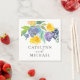 Ljusfärgad blommigt blommar i gult i kanariemiljö, lila plum och marinskrot på toppen av dessa fräcka ändå elegant bröllop-cocktailservar. Klassisk serif typsnitt moderniseras med accents of play script typography.