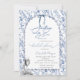 Den här elegantens inbjudan innehåller en charmerande blå båge, ett champagneglas med ro, pärlor och blåa blommor perfekt för en "något blått" möhippa. Den invecklade blommigtens motiv och blåblå huvar viskare av något gammalt, något nytt och naturligtvis något blått. Inbjudningskort för möhippa är enkelt att anpassa för evenemanget genom att helt enkelt lägga till information.