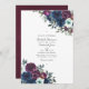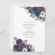 Blommigt av plommon och marin QR-kod OSA Bröllop Inbjudningar