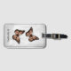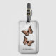 Lägg till en personlig i bagaget med en Luggage-tagg för Copper Butterfly Blommigt Personlig Tag. Utformningen av bagagetaggen har ett par vibrerande fjärilar som vilar på en vit blommigt vind mot en lätt grått-grinig bakgrund. Ytterligare presentartiklar som är tillgängliga med den här designen samt en mängd färg.