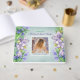 Fantastisk illustration av blommigten i Vår av lilak, lavender och violett. Gör ett underbart minneskort i personligen. Byt ut exemplet med fotot och texten från porträtt mot ditt eget. Perfekt för att hedra minnet av en mycket avskild person som njöt av blommor, natur.