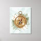 Vi presenterar vår Blommigt för vattenfärg Compass Canvas Art. Med vattenfärgsillustration av en brons kompass som är försedd med en grå andedräkt av löv och blommor, som ställs in mot en lush grönt bakgrund.