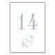 Det här romantiska bord-kortet i bröllop har blek blå vattenfärgsblommor som omger en vattenfärgsfärgad vapensköld med bröllop monogram. Perfekt för ett gods bröllop i land eller ett trädgårdsbröllop!