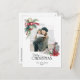 En enkel och elegant helgdag-fotomall med vattenfärgsprejning av botaniska julsprejar stil, med gräs och holly, med anpassningsbar God jul typografi och redigerbar text fält på baksidan.