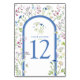 Blommigt av vildblommor, vattenfärgsblått bröllop bordsnummer