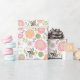 Bin - blommigten för honungsbin är vit. Bina från Tecknad stil som flyger med bubbelblommiga blommar i skuggor av rosa, orange, grönt och blått med spridda löv och stjälkar.