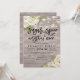 Socker och spice & Allting Nice Baby Shower-inbjudningskortsmallar - Vit ros Blommigt och String Ljus på Rustic Wood Background. Alla textstorlekar i stil, färg, kan ändras för att passa dina behov!