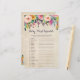 Vår färgstarka blomsterdusch med ord-scramble-kort med vintagens bakgrund har förvrängt 20 ord och alla ord är associerade med spädbarn. Du kan få gästerna att spela det här spelet (redigera bara riktningarna själv snabbt) eller så kan du göra det till en tävling genom att ge gästerna en viss tid för att slutföra spelet och ge ge ett pris till den som avslutas först. SVAR: 1)blöjor 2)babydusch 3)Änder 4)daghem 5)filt 6)nappar 7)bodydräkt 8)smak 9)aktivitetsmatta 10)eter 11)bassäng 12)flaska 13)rattle 14)barnvagn 15)mobil 16)mjukisdjur 17)pyjamas 18)pyjamas 11 9)schampo 20)bouncer