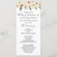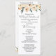 Bröllopsprogram till ge dina gäster om tidsplanen för tjänsten och en introduktion till dem som deltar i Blommigt Beige på temat White Bröllop.