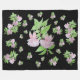 Den ursprungliga målningen på den här filten är ett söt gäng rosa fuchsias. Originalkonsten är en vattenfärg bild. Blommor av mjuk rosa hänger mellan några löv av mjuk grönt och skisseras i ett skisserat stil med hjälp av en svart nib-penna av bra. De rosa blommorna ser underbara ut mot den svarta bakgrunden på den här söten. Det här är en filt för anpassadet, du kan anpassa den genom att lägga till din egen text, du kanske vill lägga till ett speciellt födelsedag eller årsdatum.