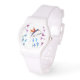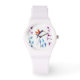 En hummingbird-klocka som är perfekt för fågeln älskare med en hummingbird omgiven av blommor som flyter utan tidsbegränsning, som det står i legenden. Denna vackra blommigt fågelkonst kommer från min glasmålning och färg kan bytas ut mot kostym. Copyright Annabel-Potter