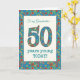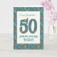 Ett ålderspecifikt födelsedagskort för en femtioårig mormor, med nummer 50 och gräns fyllt med ett färgstarkt blommönster på tealbakgrund. Blommönstret är en del av "Granny Print"-samlingen Posh & Painterly, från en handmålad papper kollage av Judy Adamson. Den här designen passar alla storlekar på gratulationskort.