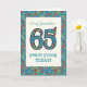 Ett söt åldersspecifikt födelsedagskort för en sextiofem-årig mormor, med nummer 65 och gräns fyllt med ett färgstarkt blommönster på tealbakgrund. Blommönstret är en del av "Granny Print"-samlingen Posh & Painterly, från en handmålad papper kollage av Judy Adamson. Den här designen passar alla storlekar på gratulationskort.