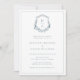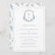 Inbjudan till blommigt Blå par Möhippor. Den här romantiska inbjudan till möhippa och snyggt har vackra handmålade vattenfärger dammiga blåa blommor på en vapensköld | Utandning med briden och brudgummens monogram. Baksidan av inbjudan innehåller ett vismiskt mönster men kan enkelt tas bort om du vill. Sök efter matchande objekt i Dusty Blue Monogrammed Vapensköld Collection.