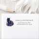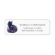 En underbar illustration av en svart katt omgiven av blommigtar i pinkar, blues och lila platser till lämnat om denna returadressetikett, och du kan enkelt anpassa den moderna svarta typografin med din egen namn och kontaktinformation.