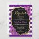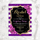 Blommigt Black Guld Lila Rand Inbjudningskort för möhippan, Elegant lila svartvit design med faux glitter guld. Med skriptteckensnitt, rand och lila ro. Perfekt för en snyggt Möhippa. Berätta om du behöver anpassa dig ytterligare.