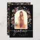 Blommigt Black Student-meddelande. Den här snyggt & elegant studenten-annonsen har en fantastisk, handmålad, vattenfärgad visblomma som ordnats som ett vackert kalligrafiskt skript för bouquet och elegant. På baksidan finns ett vackert samordnande mönster. Hitta matchande produkter i samlingen Boho Wildblomma Studenten.