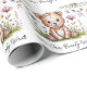 Ett charmigt babyduschkort med en vattenfärgsklippare som illustrerar en söt brun björn i baby med lekfullt lapptäcke päls och delikat blommigt som sprids över kroppen. Björnen sitter mitt i fält av vismblommor av pastelltyp - lavender, baby blue och mjuk gult - och skapar en mjuk och vismisk scen, med några spridda fjärilar som tillför en gnutta magi. Texten "Vi kan vänta tidigt" visas i ett sött, handskrivet skriptteckensnitt under björnen, som kompletterar vattenfärgen estetisk, och kortets insida ger gott om utrymme för ett hjärtligt budskap med ett subtilt gräns av små blommigtar. Den övergripande tonen är varm, glatt och inbjudande perfekt för att fira ett nyfödd bebis ankomst. Underbar för en flicka eller en pojkvän.