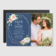 Blommigt - blått foto - spara datum Magnetiskt kort
