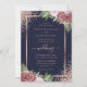 Komplettera bröllopsfesten för marinblått och ro guld med de inbjudningar till blommigt för elegant som innehåller en ro-guld ram som är adorerad med rosa ros och ro guld/konetti.