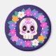 Blommigt Blommsocker Skull Magnet