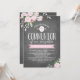 Inbjudan till anpassadet Communion med vattenfärgblommor i en kalkbrädesbakgrund.