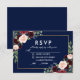 Vattenfärgsmodell Burgundy Marsala Blue Guld Bröllop OSA Card - Blue Back - Meal Choal Blommigt