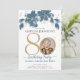 Blommigt Blue Guld Anpassningsbar Photo 80:e Födel Inbjudningar
