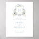 Blommigt Blue Hydrangea Vapensköld Monogram Välkomstskylt. Välkomstskylt för Dusty Blue Bröllop. White Hydrangea Flowers Greenery Watercolor Bröllop Vapensköld Poster