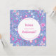 Modern botanisk vild blomma mönster i rosa och vitt spridd på yttervinkesklarblå bakgrund. Ett fantastiskt matchande kort för begäran om mutor som ska samordnas med din samling i bröllop. Originalkonst av Nic Squirrell.