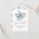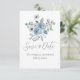 Blommigt Blue Script Modern Bröllop spara datum