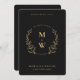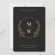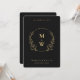 Blommigt Boho Bröllop Monogram Elegant Black Guld Inbjudningar