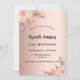 För en modern boho stil 21:a (eller någon annan ålder) födelsedagsfest. En bakgrund i ro guld. Dekoreras med ro guld och rosa blommigt, rosor och pampasgräs. Anpassa och lägg till information om namn och party.