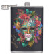 En färgstark mask med blommor i bakgrunden, stil i realistiska kiaroscuro, grafisk design poster konst, invecklade kostymer, livliga illustrationer, svårskulpterade, realistiska färg-paletten, noggrant beskriven.