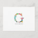 Platt anteckningskort med en inledande blommigt i monogram, brev 'G' med namn under.